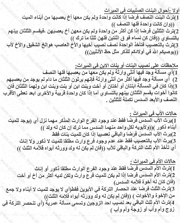 (يُوصِيكُمُ ٱللَّهُ فِيۤ أَوْلَٰدِكُمْ لِلذَّكَرِ مِثْلُ حَظِّ ٱلأُنْثَيَيْنِ فَإِن كُنَّ نِسَآءً فَوْقَ ٱثْنَتَيْنِ فَلَهُنَّ ثُلُثَا مَا تَرَكَ وَإِن كَانَتْ وَاحِدَةً فَلَهَا ٱلنِّصْفُ وَلأَبَوَيْهِ لِكُلِّ وَاحِدٍ مِّنْهُمَا ٱلسُّدُسُ مِمَّا تَرَكَ إِن كَانَ لَهُ وَلَدٌ فَإِن لَّمْ يَكُنْ لَّهُ وَلَدٌ وَوَرِثَهُ أَبَوَاهُ فَلأُمِّهِ ٱلثُّلُثُ فَإِن كَانَ لَهُ إِخْوَةٌ فَلأُمِّهِ ٱلسُّدُسُ مِن بَعْدِ وَصِيَّةٍ يُوصِي بِهَآ أَوْ دَيْنٍ آبَآؤُكُمْ وَأَبناؤُكُمْ لاَ تَدْرُونَ أَيُّهُمْ أَقْرَبُ لَكُمْ نَفْعاً فَرِيضَةً مِّنَ ٱللَّهِ إِنَّ ٱللَّهَ كَانَ عَلِيماً حَكِيماً)[النساء 11]